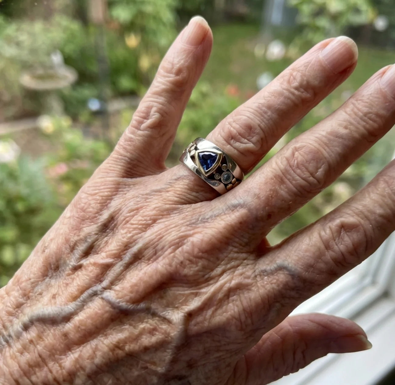 "Llevo 23 años engarzando piedras y cada pieza me sigue entusiasmando. La forma en que estas gemas de colores reflejan la luz de forma diferente a lo largo del día es inolvidable. Me aseguro de que cada piedra esté bien colocada y perfectamente colocada antes de dejarla en mi mesa."